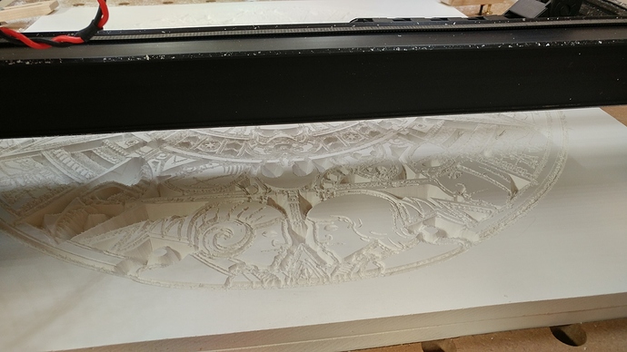 The carve took approx 9+ hours, i am thinking about running the carve again (with a deeper per pass amount, to speed the carve up) to just clean out the debris, (or the old fashion way of picking out all the extra pieces with a little scraping tool)