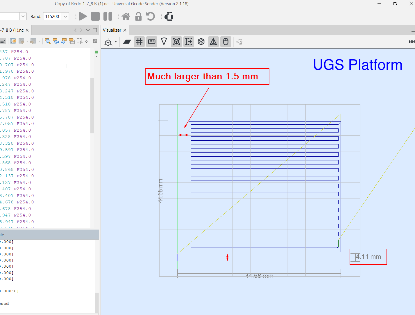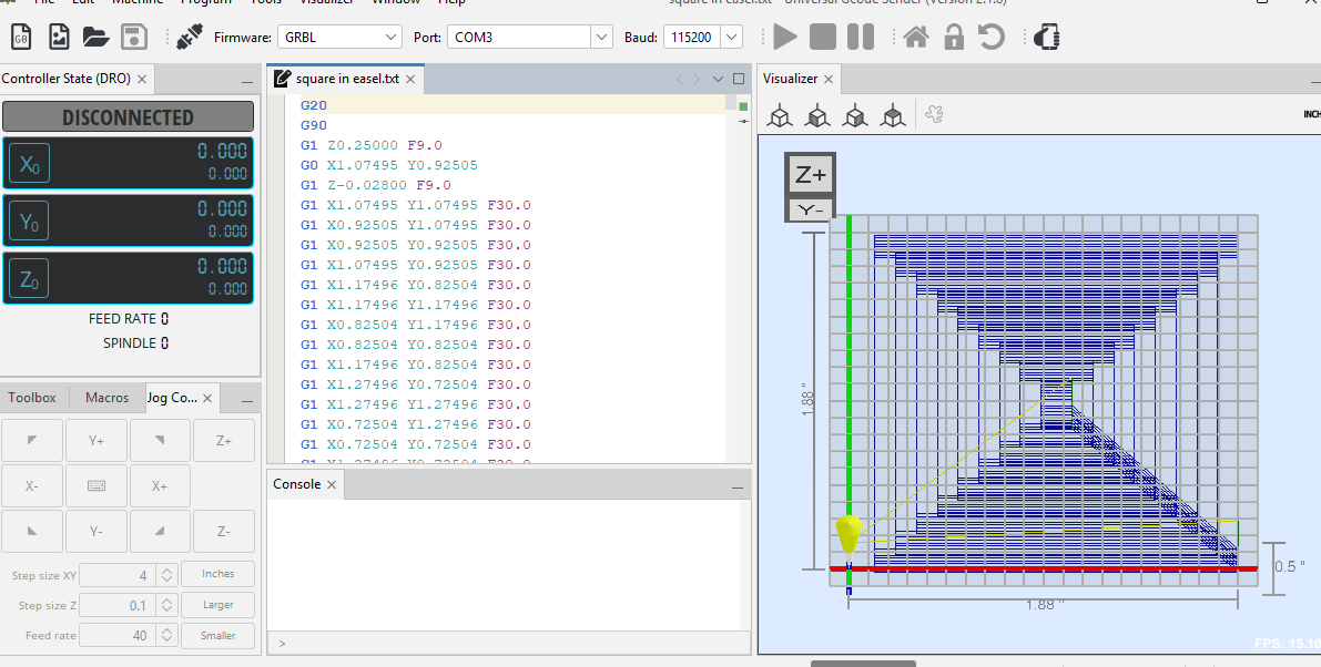 When I load the G-Code into UGS, it also reflects this offset so it seems as though it is being added during the G-Code generation out of Easel. I can’t see what the grid line dimensions are set to in UGS visualizer so can’t confirm the exact amount of the offset, but it is definitely there in the displayed G-Code. I also installed OpenBuilds CONTROL to see if it was a problem with UGS, but it looks the same in that program as well.