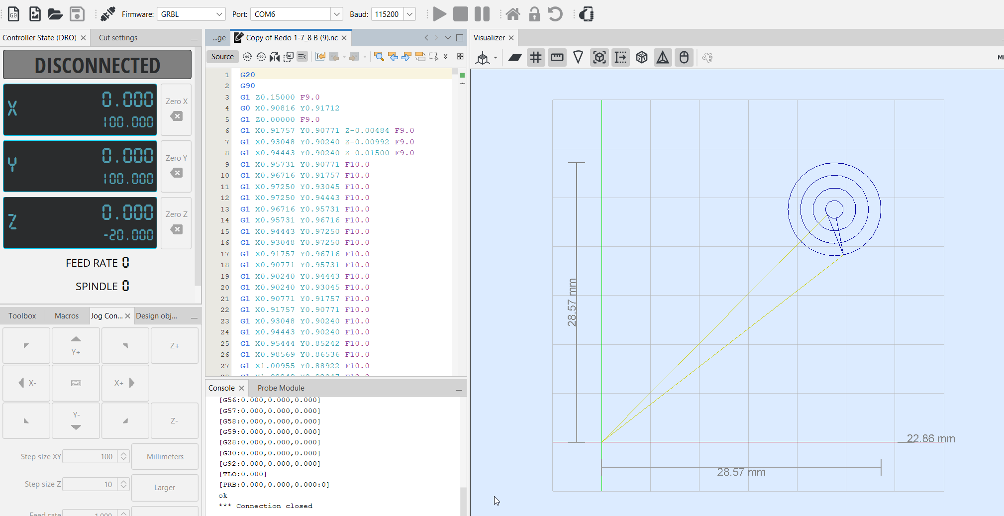 I’m designing in Easel Pro and using UGS Platform to run G-Code I download from Easel.