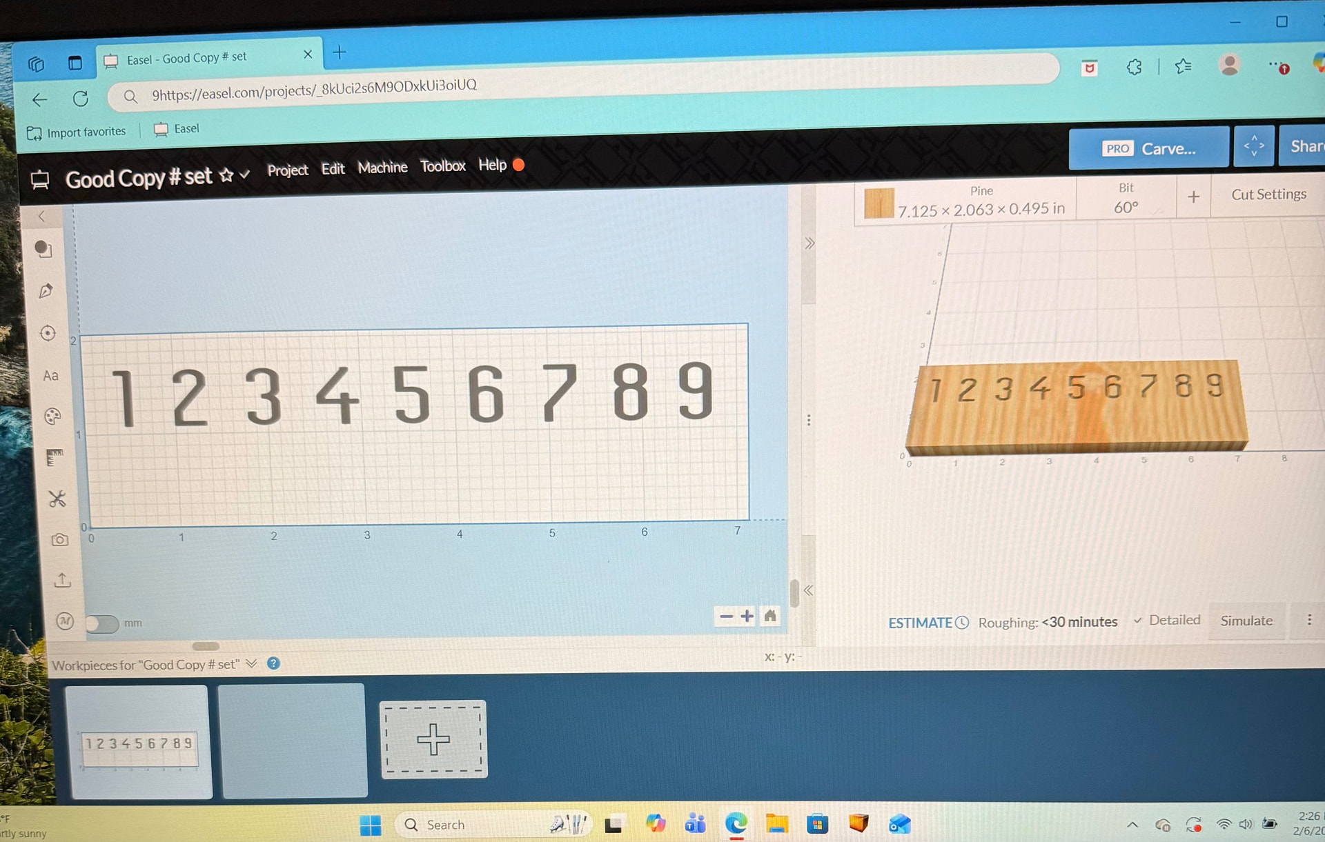 I need some help in laying out a carve I have 9 wood game flippers I want to carve with numbers 1-9 and want to do it in one machine pass each flipper measures.798”wide x 2.090”long x .485” Thk. Lined up side by side total width is 7.083” see (attached photos) The way I’v been doing it my numbers come out off center they’re ok in the first few numbers but way off center in the last couple of numbers. Whats the best way to accomplish this Thanks Jim Tar