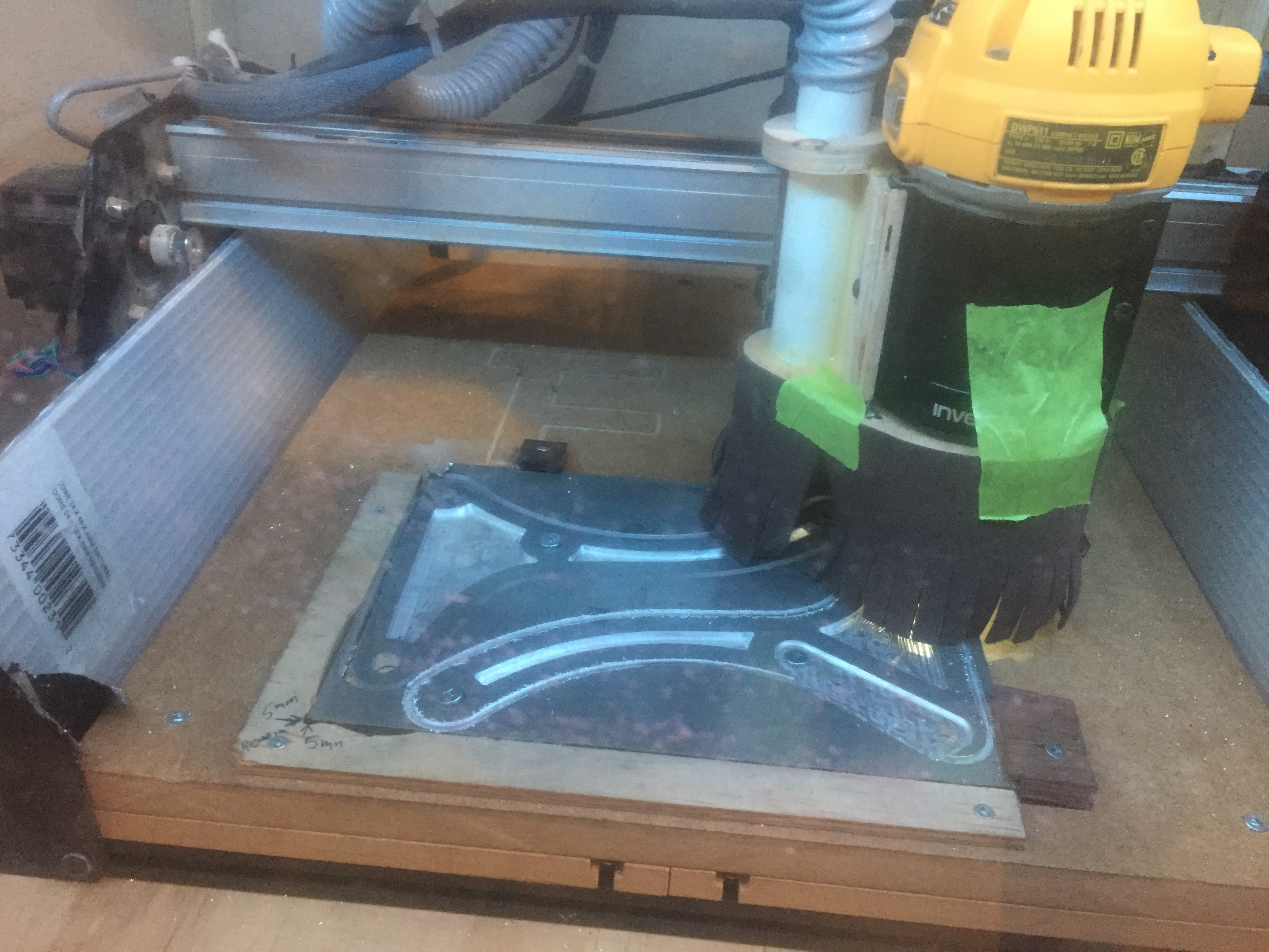 Machine is 500mm SO2, upgraded to Xcarve with DW611, upgraded again with new gantry and nema 23s when that came out, upgraded again with x-controller, still need to disassemble to change out x-rail with new single extrusion.