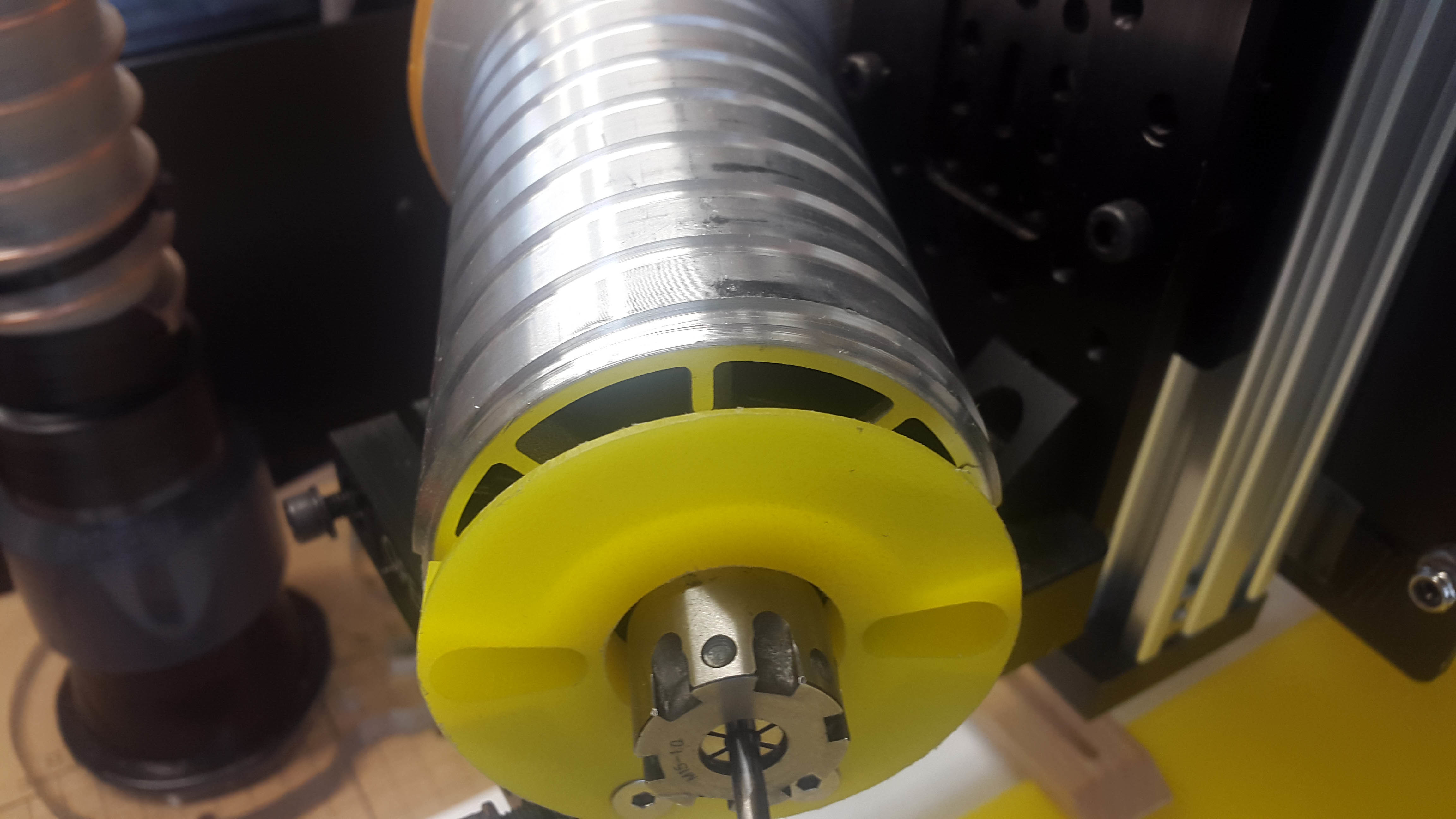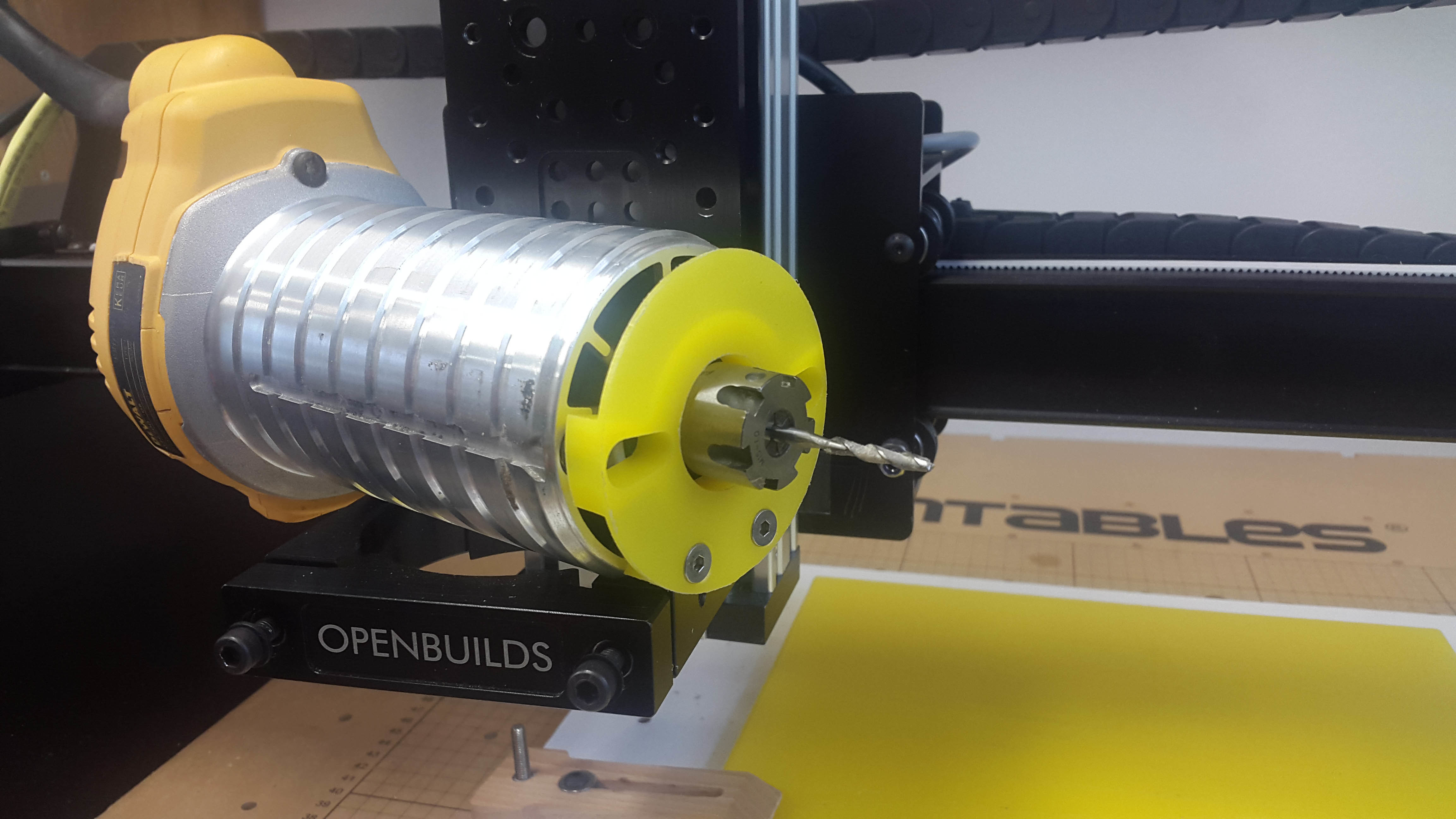Hi FatKatOne, I removed the factory screws which hold the spindle locking mechanism and tapped the holes to take an M4 thread. The screws I used were countersunk 20mm M4 Hex, which worked perfectly with the material I was using, which was 12.7mm thick HDPE. I modified the dxf file in Adobe Illustrator, then used VCarve to create the tool paths. I have attached the Adobe Illustrator file, my version of the dxf file, the VCarve file and the resulting Gcode…