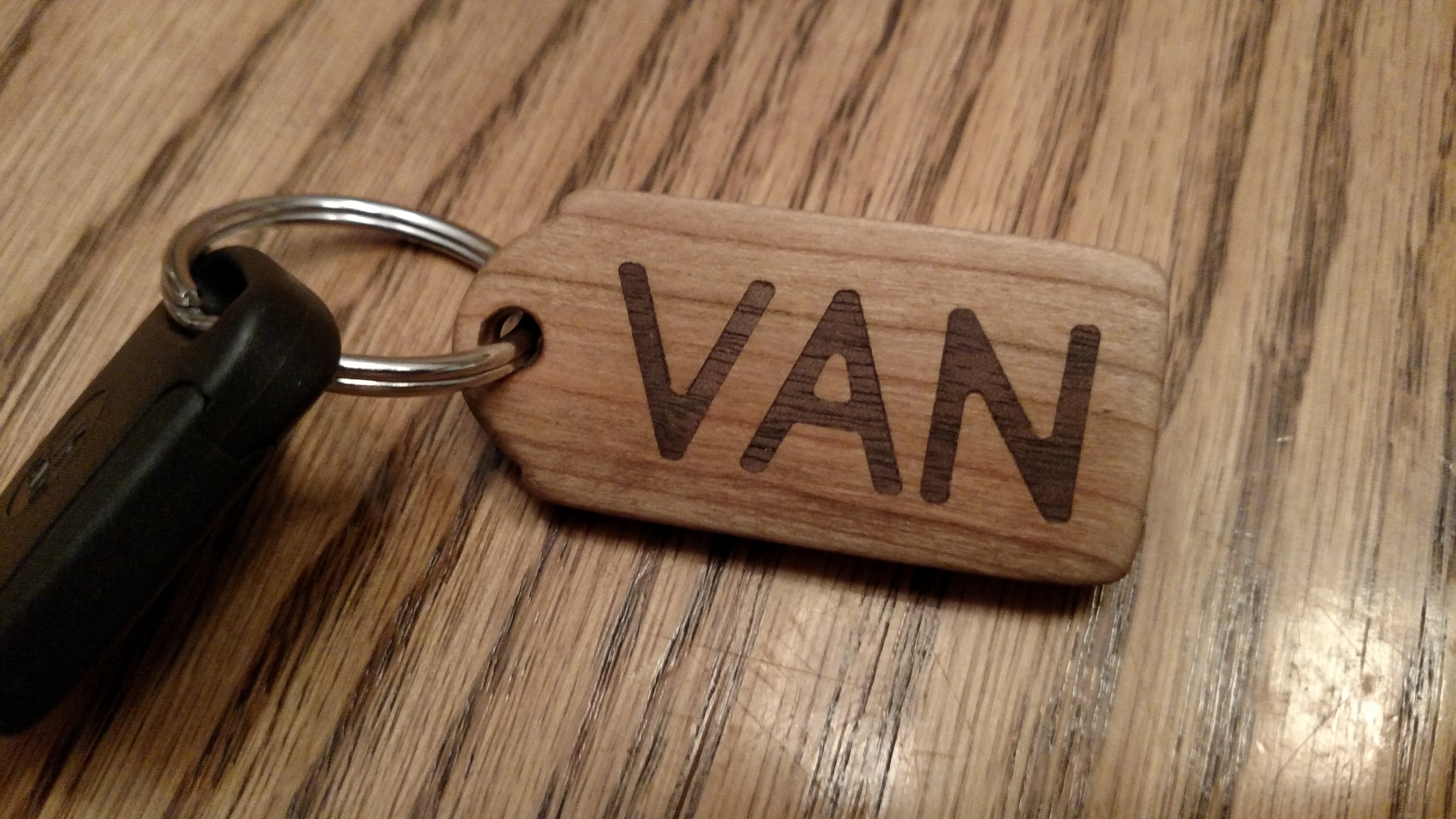 The two pictures are the same keychain I did for my son who turned 16 (no new car, just his own key). One side is walnut with cherry inlay, the other side is cherry with walnut inlay. I used 1/8" thick cherry and walnut. I cut the inlay pocket about .080" deep in the .125" material for both sides. Cut out the inlay, glued in the inlay on both pieces and glued both halves together. Clamped overnight and then sanded the inlay smooth. Finished with mineral oil and wax to keep that soft wood feel in your hand.