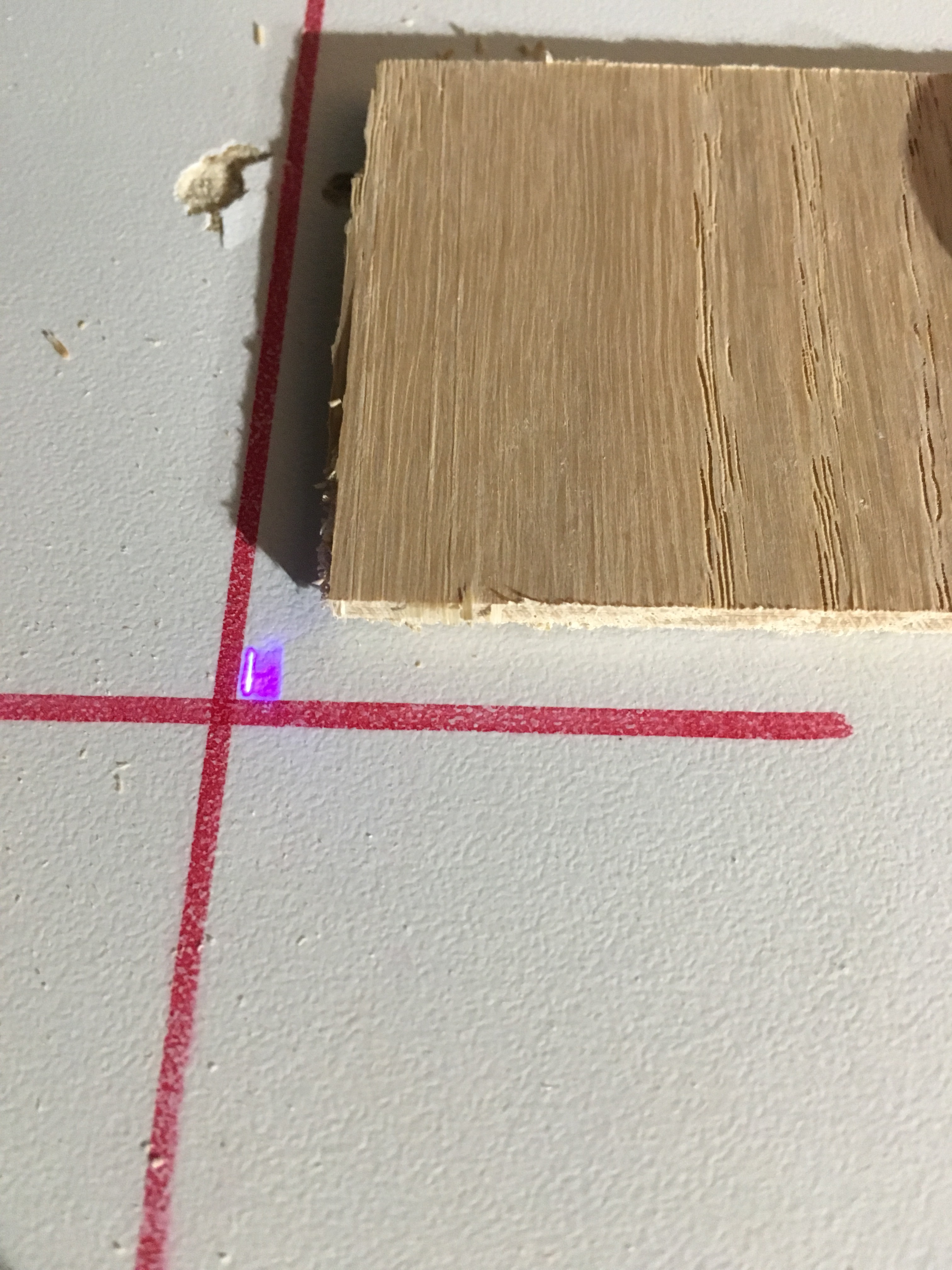 After I had a right angle on my wasteboard. I aligned laser first in corner then slid the work piece underneath and measured the 3" from heat sink