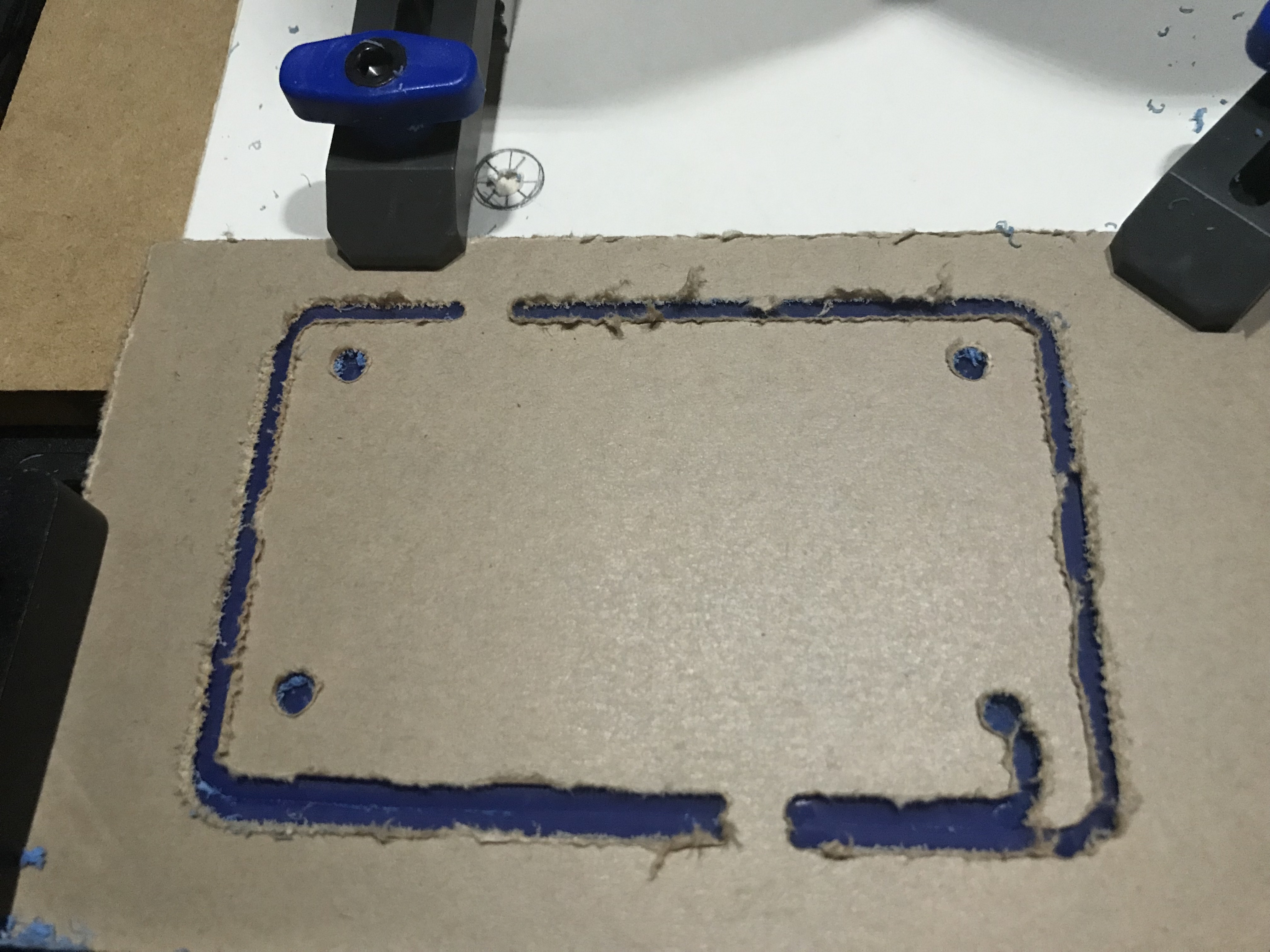 In the image you can see that it’s carving another pass at the outside, making it wider. (that gap there is for a tab, it carved a little more, and then I paused it)