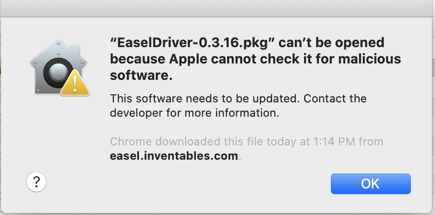 OS Catalina is telling me this file has not been approved by Apple - is there another validation that needs to be done for this to work?