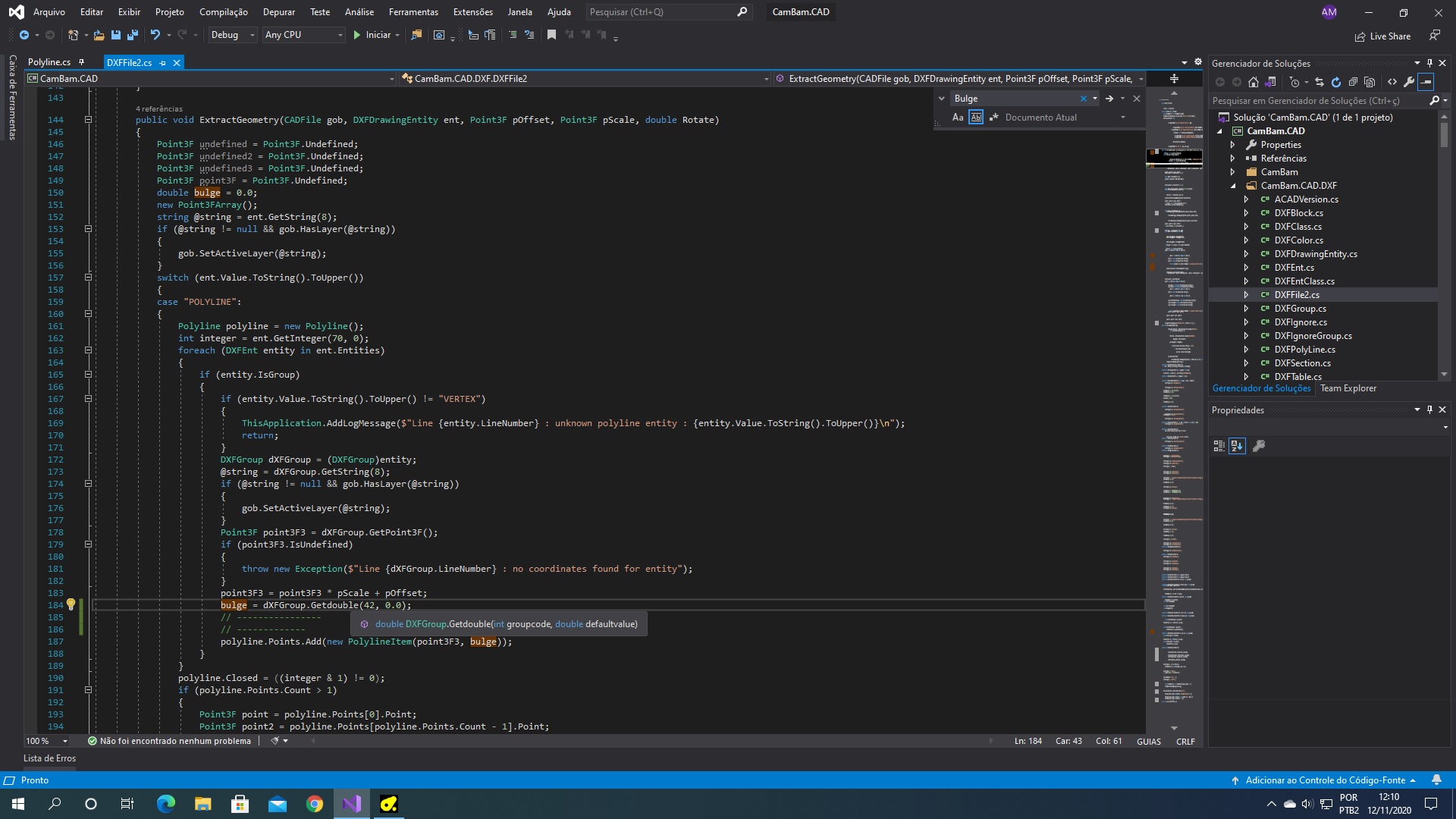 When importing or exporting the DXF file, an element called “bulge” with code 42 is missing.