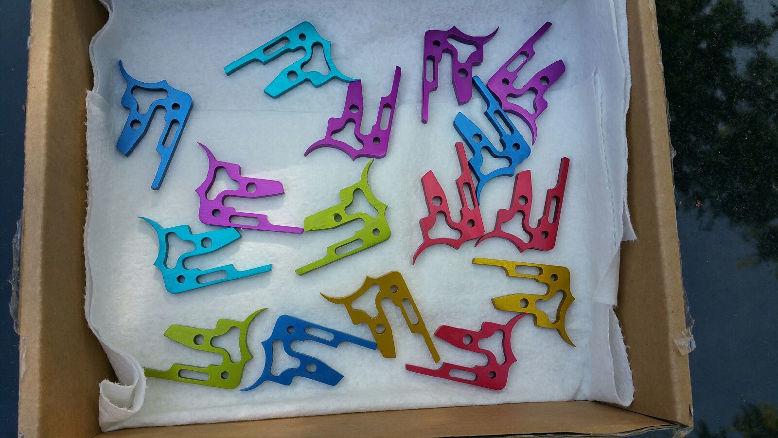 I think doing our own in-house anodizing is the only reason this is working. In the paintball scene, you’ll be hard pressed to sell aluminum parts that aren’t anodized and outsourcing that stuff is expensive. Here are some pics of the run I did over the weekend.