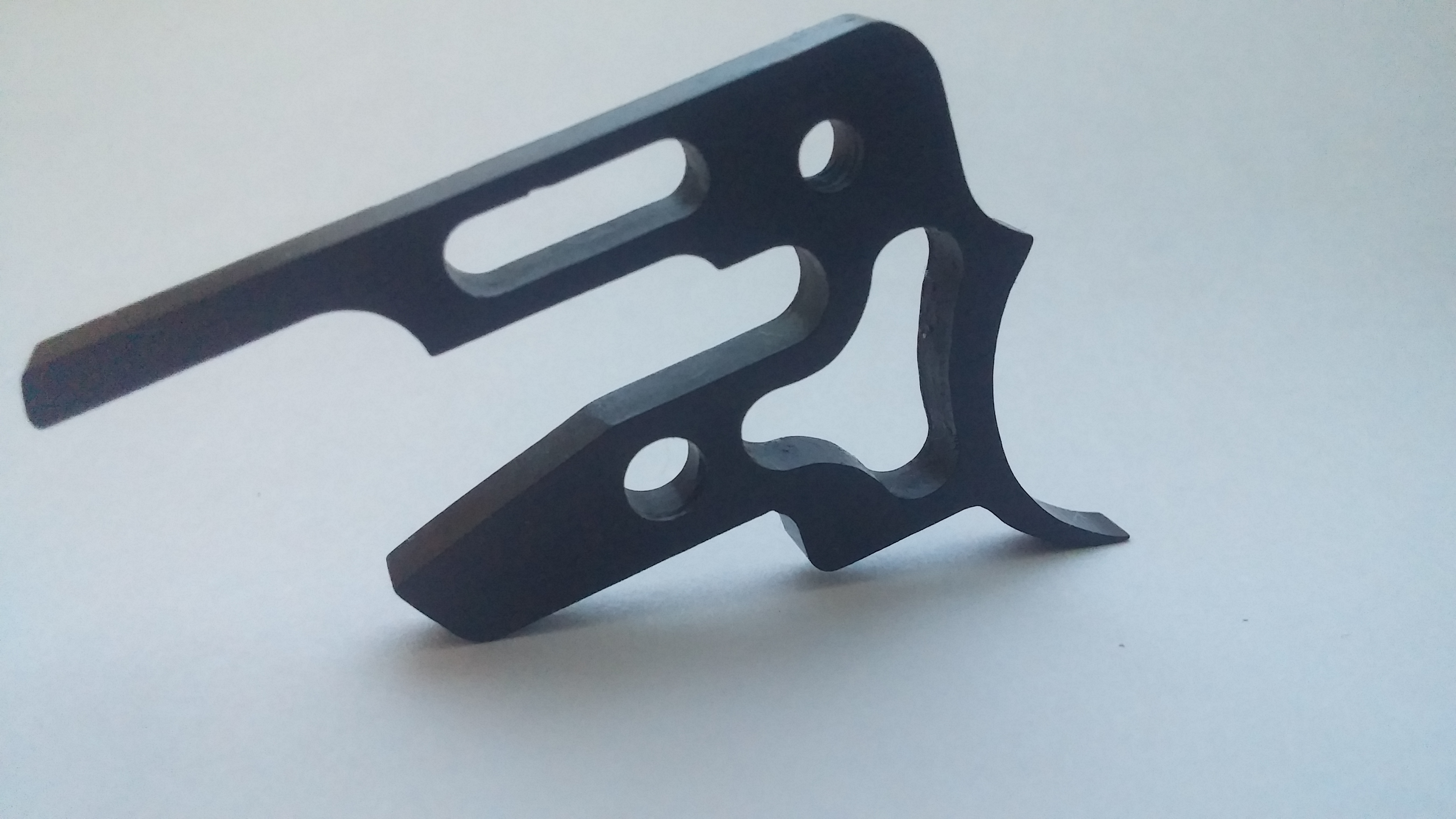 We started out very small, since this was our first foray into CNC in general. After about a month of learning CAD, CAM and how they apply to aluminum on the X-Carve, we were making parts to sell! Its been about 4 or 5 months now and we are consistently selling parts. Our “bread and butter” parts are triggerplates for autococker paintball guns (a fairly “classic” type of paintball gun, where parts can be rare). These parts are simple 2.5D cutouts that we tumble then anodize then sell on ebay/facebook/paintball forums. We are looking into working with paintball part websites so we can start wholesaling them out 20-100 at a time.