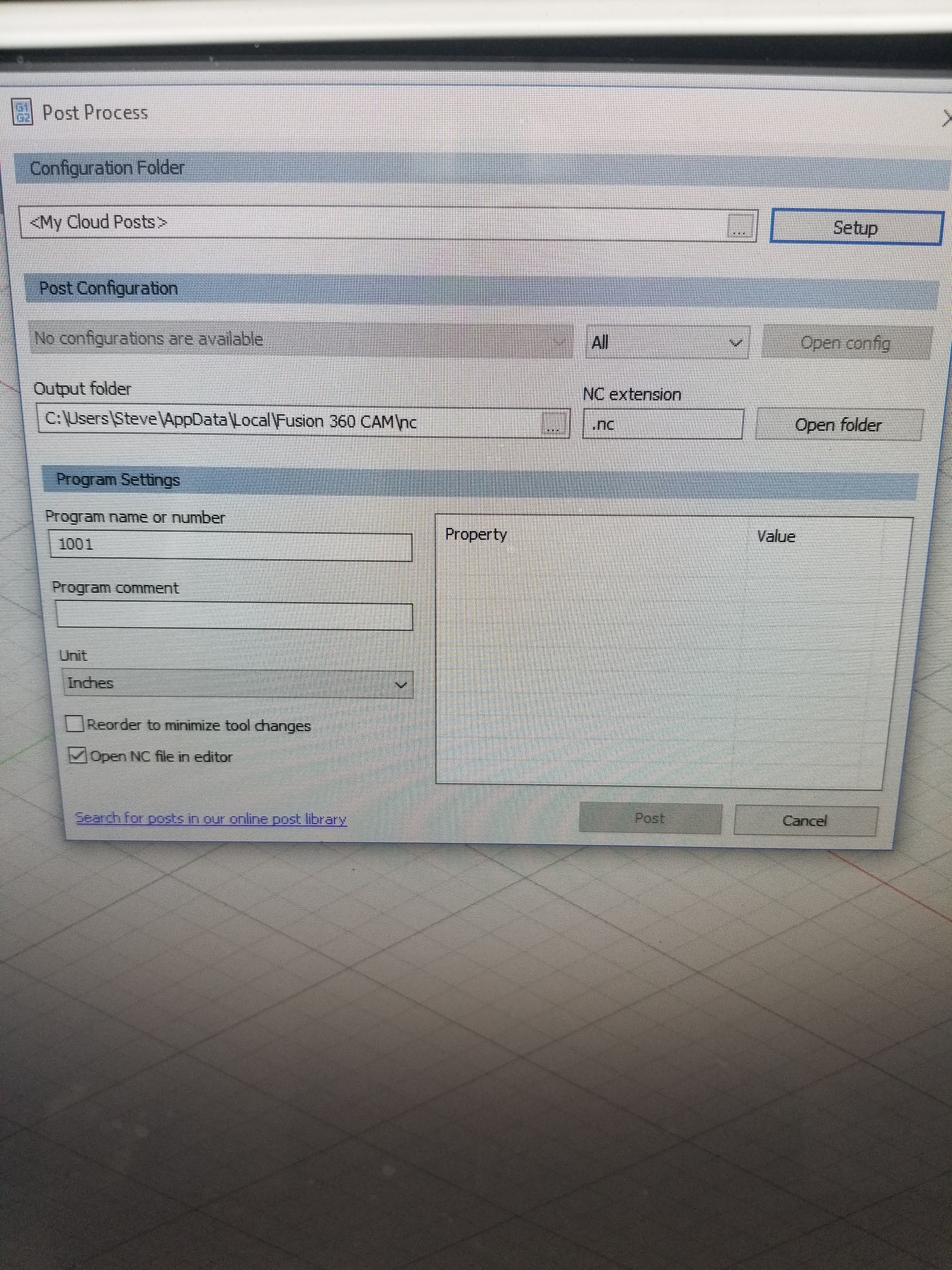 I go to use cloud posts and nothing happens I get this and not able to post I have the x carve file in fusion assetsFigured it out another way thank you