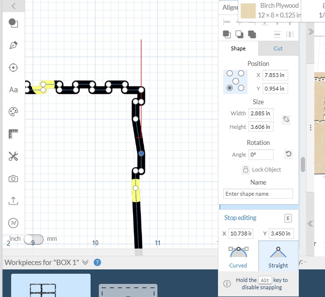 Thanks Ron ! I tried that and it works!! I found you can hold the control key down and do multiple nodes at the same time. I learn more about Easel by trying to help these folks…LOL. I use Rhino for drawing, but will give this box thing a try if it ever warms up. I’d have to add a tab or two ( or use double sided tape on the parts not attached anymore.