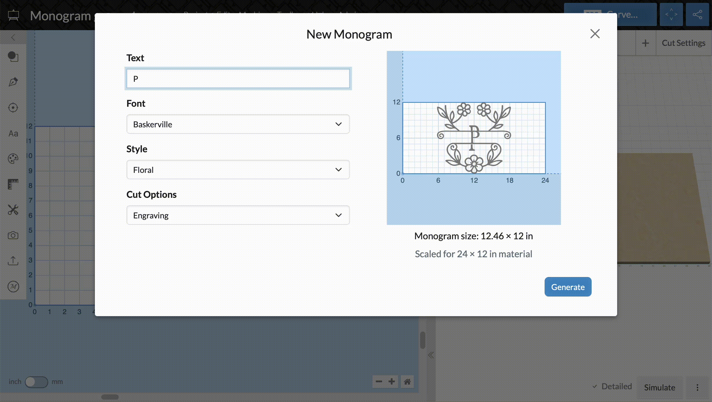Easel has a new monogram generator that makes it easy to carve names, initials, or other text embellished with one of several built-in designs. Easel positions and sizes your text within the design to make it carveable as an engraving or cutout.