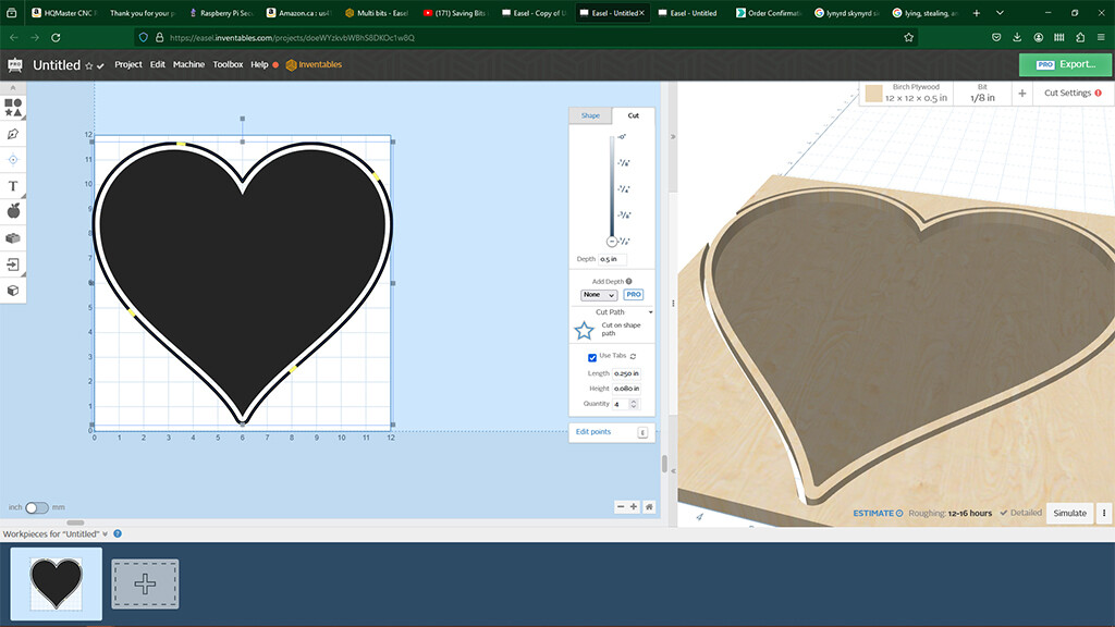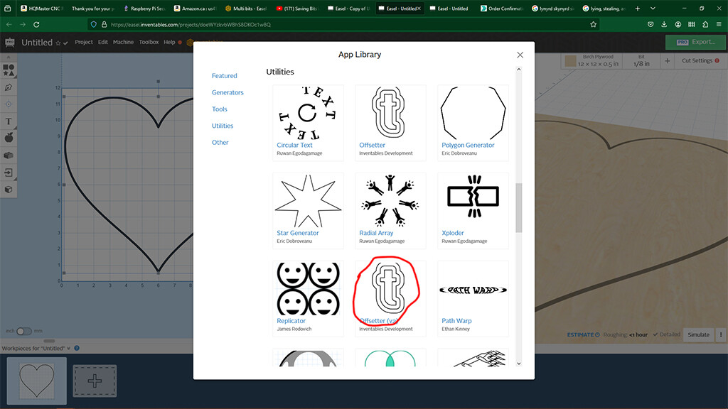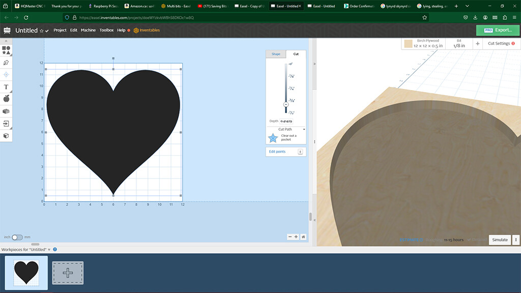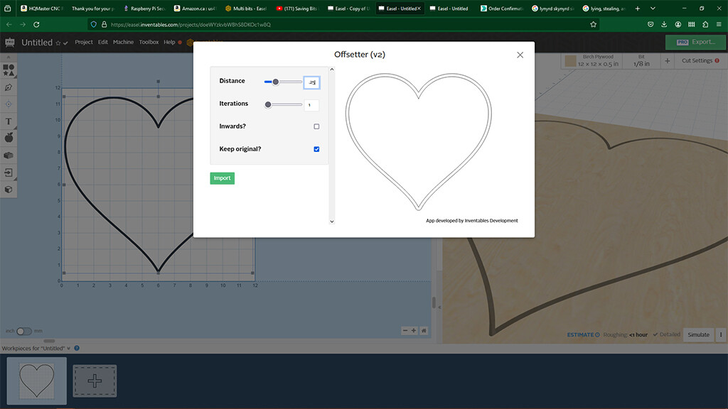As an FYI, I have made several attempts at work-arounds. I found a different ‘heart’ pattern in the available choices which was solid. This will allow me to clear the pocket, but the problem is that I cannot figure out how to have a ‘rim’ around the outside, so that I can cut it out (let alone cut it out leaving a rim.