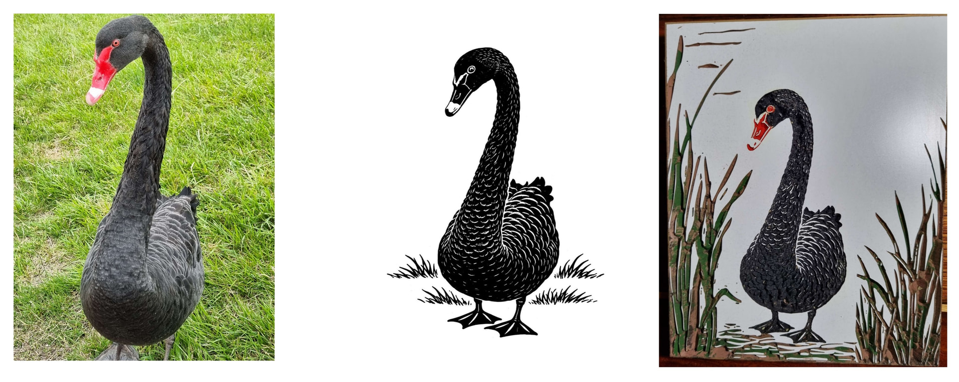 Here’s an example of taking a photo and converting it into a lino print style image. This is then readily accessable for carving. (used VCarve to produce GCode)