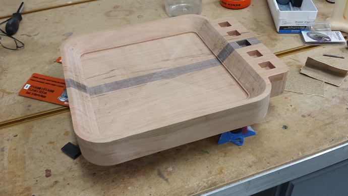 I’m torn between two of recent projects. This was a tablet/cookbook holder I made for my wife’s grandmother that turned out really well with the different colors: