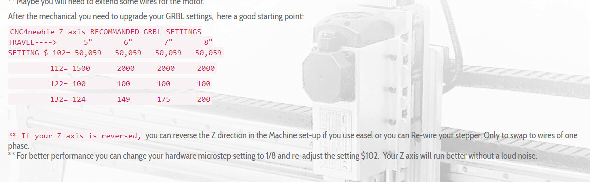 Ohh, you need to adjust the $3, $102, and $132 for a non- stock z axis