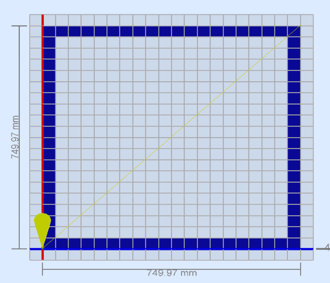 Even the exported code is not a complete square. Changing the bit size to be 0.5 mm and it changes to:
