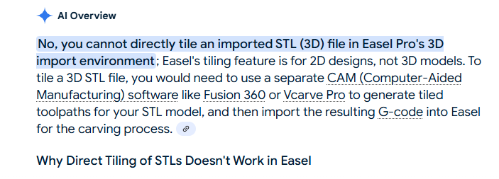 The tiling option isn’t available when carving an imported 3d stl file from fusion 360. How can I use tiling with those files…..