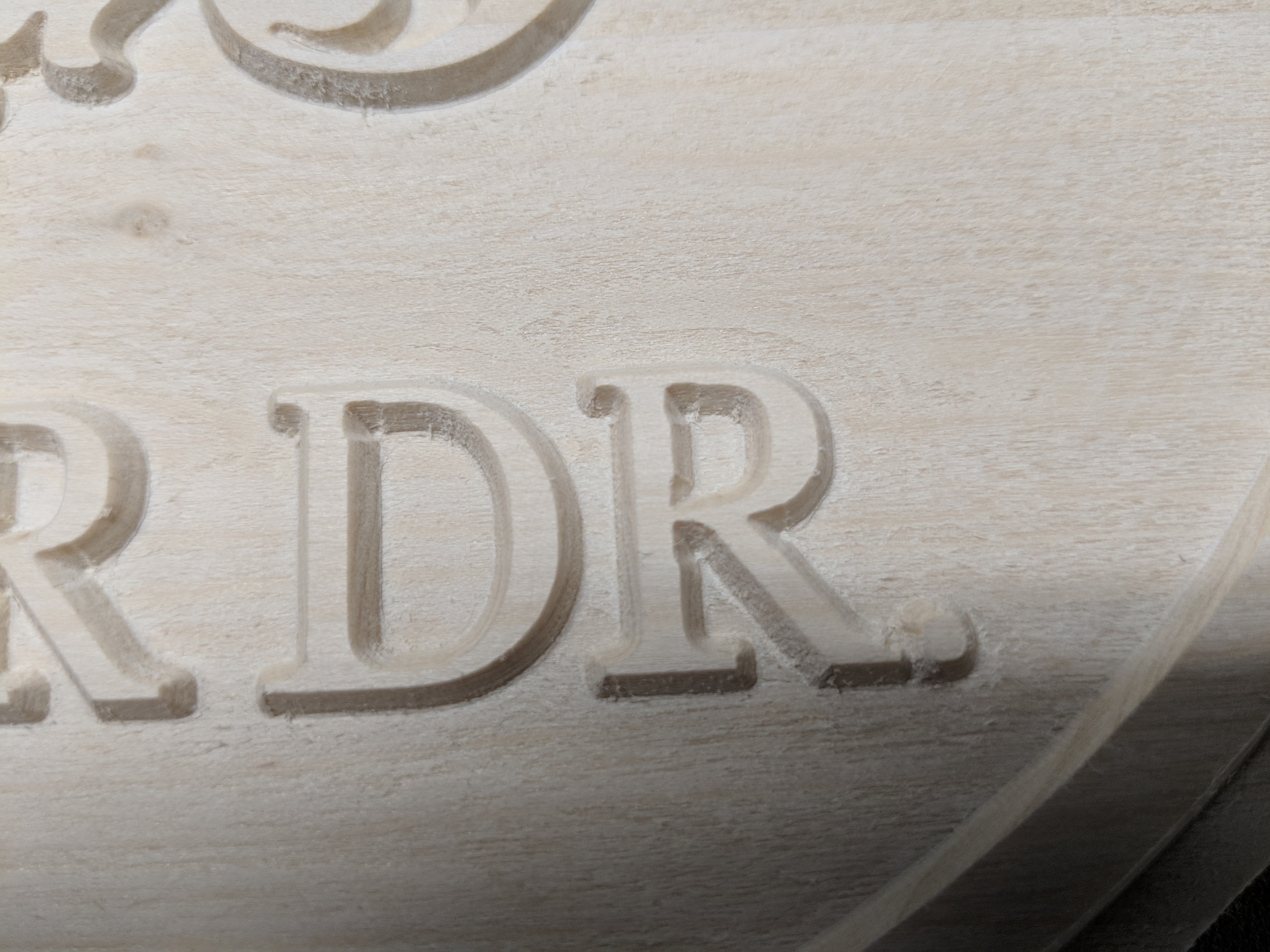 This is the only one I have a picture of at the moment. I scrapped it because I forgot to plane it first and the depths of cut became an issue. I also misaligned it so it was a nice learning moment for me. Maybe you can see examples of blown out corners that have been mentioned. I would have been perfectly fine with this sign if human error had not been involved.